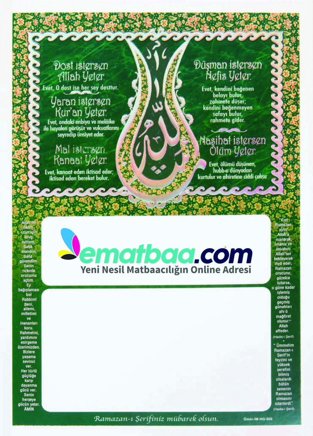 • Ebat: 25X35 cm ebadında 210 gr Amerikan Bristol simli lak.