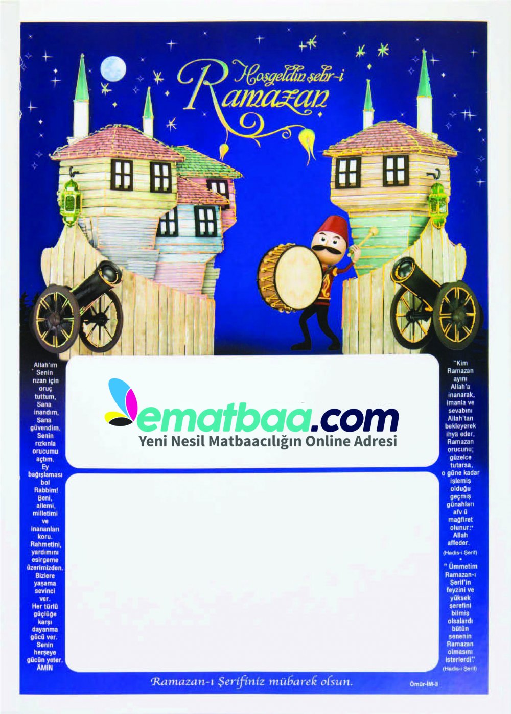 Ebat: 25X35 cm ebadında 210 gr Amerikan Bristol Varak Yaldız + GofreGramajı: 210 Gr Renk 4 Renk + Yaldız + Gofre + Lak