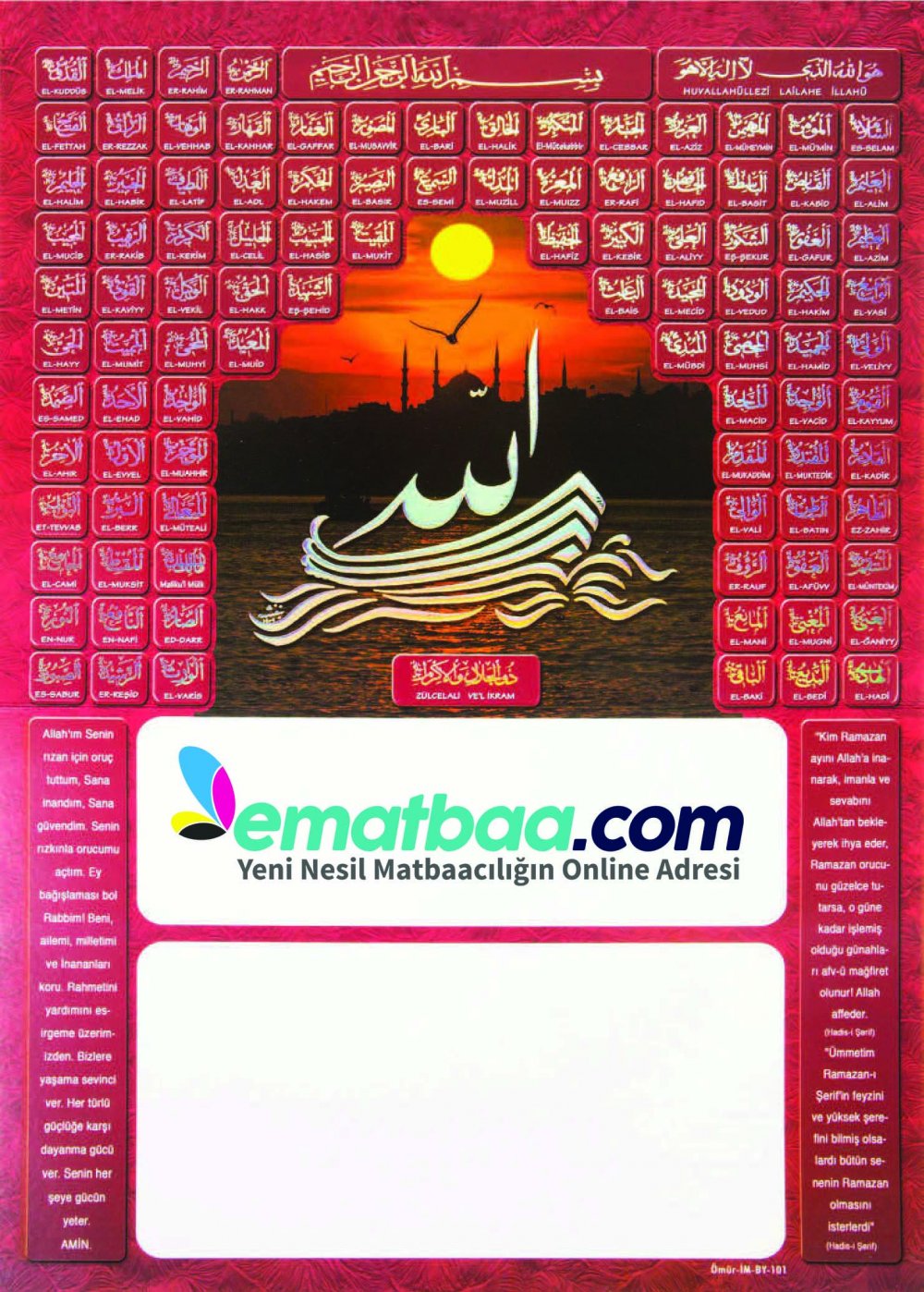 Ebat: 31X44 cm ebadında 270 gr Amerikan Bristol simli lak.<br>Gramajı: 270 Gr Renk 4 Renk + Yaldız + Gofre