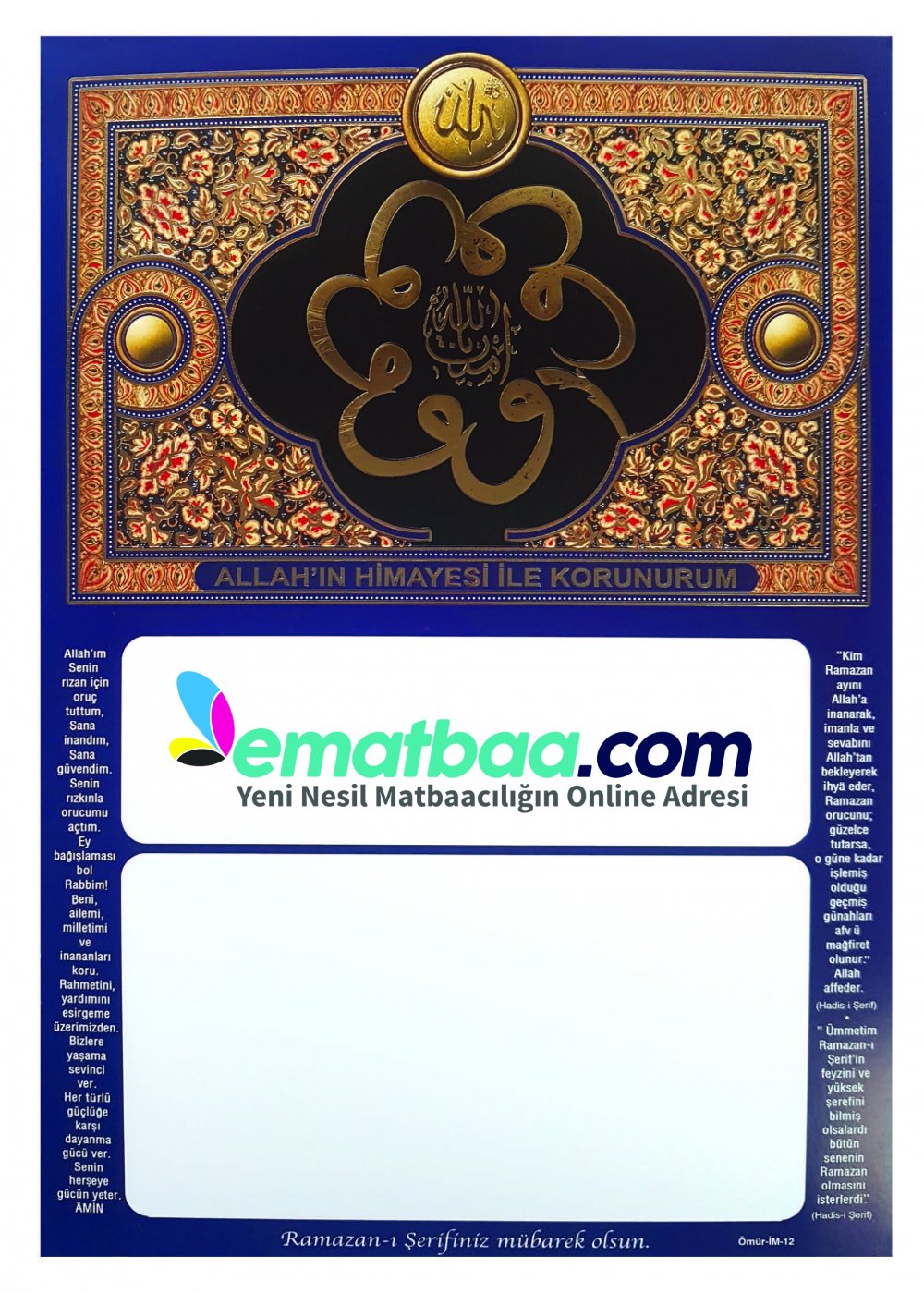 • Ebat: 25X35 cm ebadında 210 gr Amerikan Bristol Varak Yaldız + Gofre
