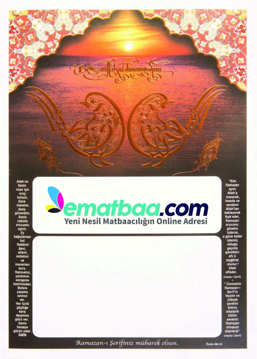 • Ebat: 25X35 cm ebadında 210 gr Amerikan Bristol Varak Yaldız + Gofre