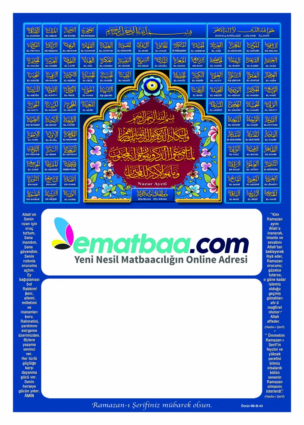 Ebat: 25X35 cm ebadında 210 gr Amerikan Bristol Ofset BaskıGramajı: 210 Gr Renk 4 Renk + Ofset Baskı