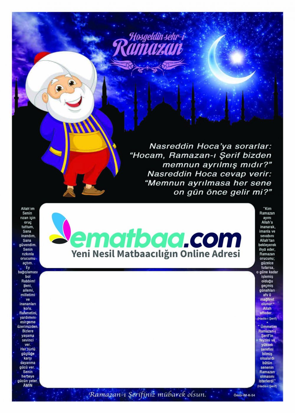 • Ebat: 25X35 cm ebadında 90 gr Amerikan Bristol Kuşe+ Ofset Baskı