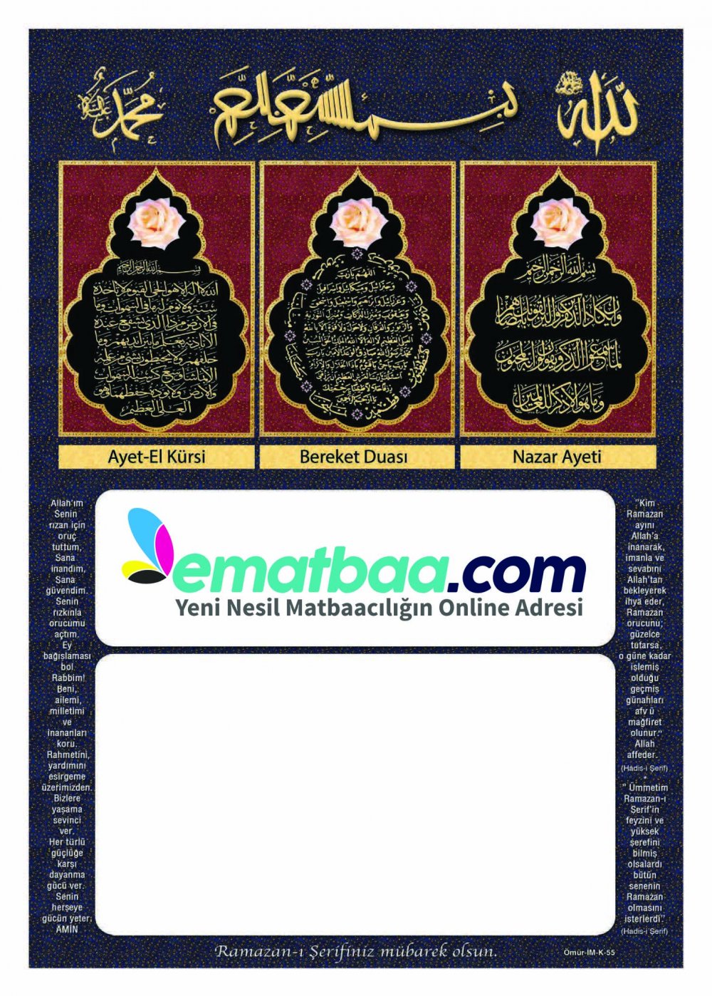 • Ebat: 25X35 cm ebadında 90 gr Amerikan Bristol Kuşe+ Ofset Baskı